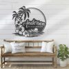 Beach House Name Sign Wall Art Hawaiian Personalized Metal Sign Flower Tree Family Scene