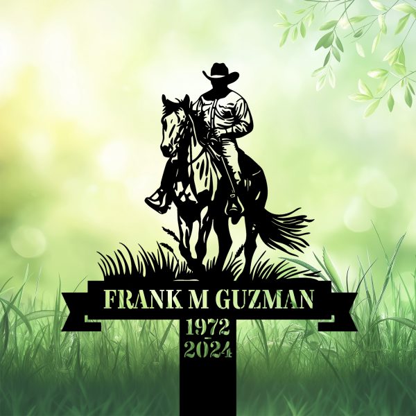 DINOZOZOCOM Personalized Memorial Garden Stakes, Vintage Cowboy Riding Horse Grave Marker